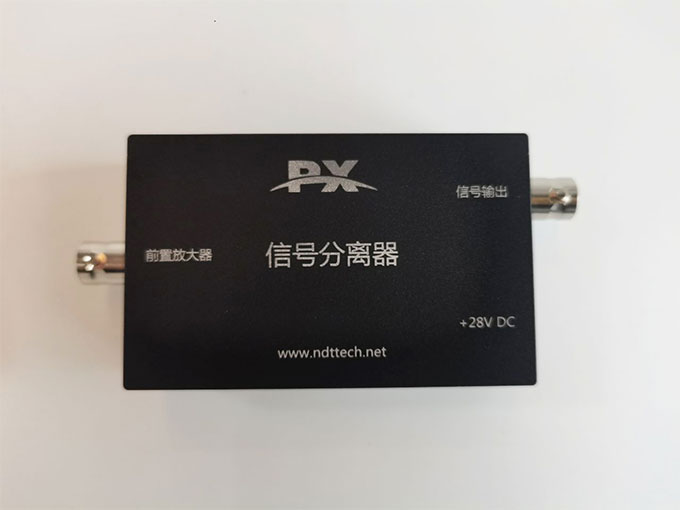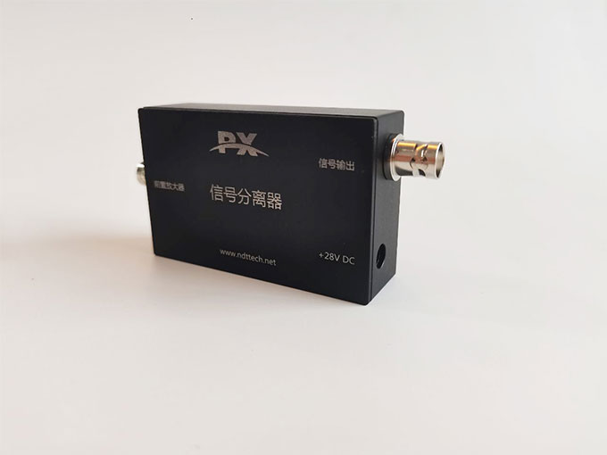 PXDCBlock是專為內(nèi)置放大聲發(fā)射傳感器且后端采集系統(tǒng)不能向前載波供電的場(chǎng)景所設(shè)計(jì),匹配通用的數(shù)據(jù)采集卡或示波器等使用。前端BNC接口連接內(nèi)置放大聲發(fā)射傳感器,后端BNC接口連接示波器或通用數(shù)據(jù)采集卡等;單獨(dú)適配器供電(AC220V轉(zhuǎn)DC28V)。